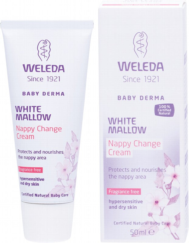 Weleda White Mallow Nappy Change Cream Fragrance Free 50ml Ingredients: Water (Aqua), Zinc Oxide, 'Cocos Nucifera (Coconut) Oil, 'Prunus Amygdalus Dulcis (Sweet Almond) Oil, 'Sesamum Indicum Seed (Sesame) Oil, Glycerin, Lanolin, Hydrolyzed Beeswax, Glyceryl Oleate, 'Beeswax (Cera Alba), Borago Officinalis Seed Oil, 'Helianthus Annuus Seed (Sunflower) Oil Unsaponifiables, 'Althaea Officinalis Root Extract, Viola Tricolor Extract, Glyceryl Caprylate, Sodium Lauroyl Lactylate, Lactic Acid. 'Organic Ingredient RRP Per Unit: 18.95