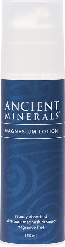 Ancient Minerals Magnesium Lotion Full Strength 150ml Ingredients: Water, Genuine Zechstein Magnesium Chloride, Organic Vegetable Glycerin, Organic Simmondsia Chinensis (Jojoba) Seed Oil, Squalane (Olive), Cetearyl Olivate, Sorbitan Olivate, Organic Cocos Nucifera (Coconut) Oil, Glyceryl Stearate, Cetyl Alcohol, Organic Butyrospermum Parkii (Shea Butter), Xanthan Gum, Lactobacillus Ferment, Cocos Nucifera (Coconut) Fruit Extract, Sodium Hyaluronate. RRP Per Unit: 38.95