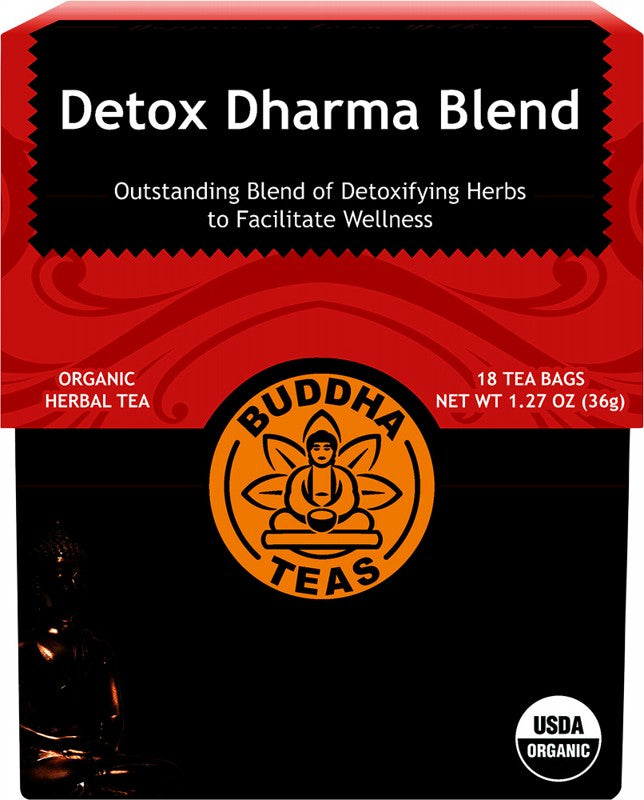 Buddha Teas Organic Herbal Tea Bags Detox Dharma Blend 18pk Ingredients: Organic Turmeric Root, Organic Ginger Root, Organic Burdock Root, Organic Sarsaparilla Root, Organic Fennel Seed, Organic Licorice Root, Organic Cardamom Seed, Organic Black Pepper. RRP Per Unit: 10.95