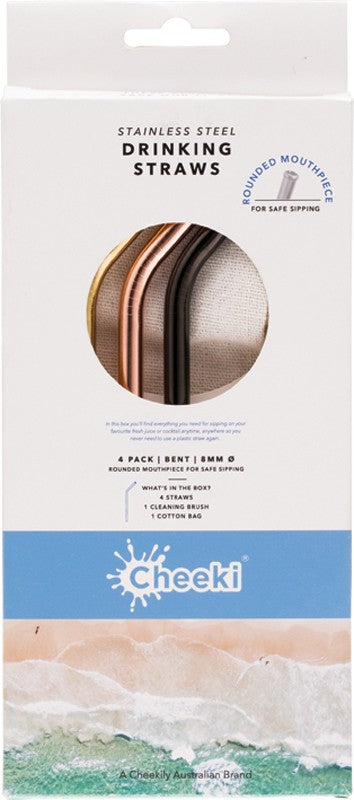 CHEEKI Stainless Steel Straws - Bent All Colours + Cleaning Brush - 4 9342192005021