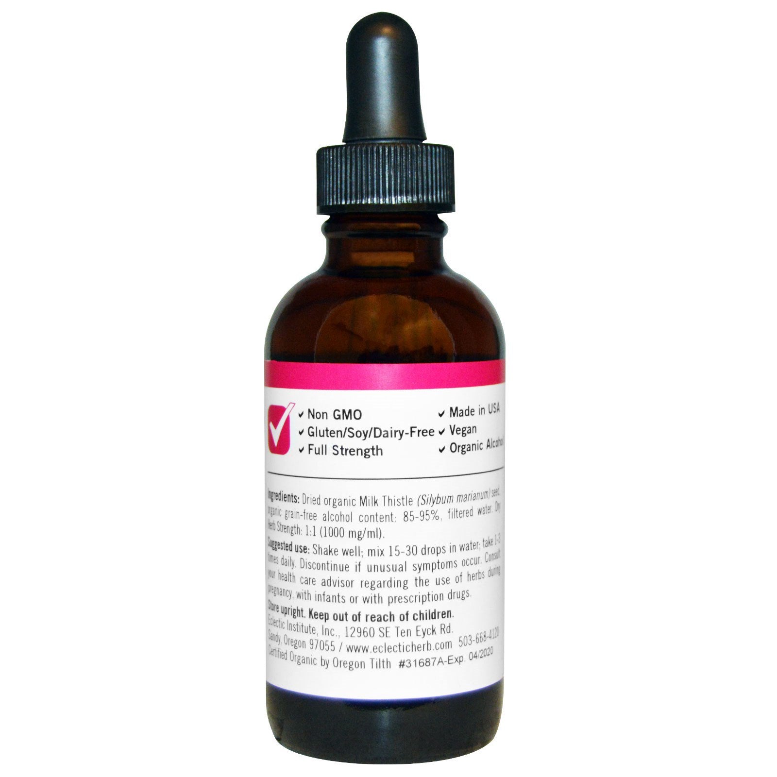 Dried organic milk thistle (silybum marianum) seed, organic grain-free alcohol content: 85-95%, filtered water.