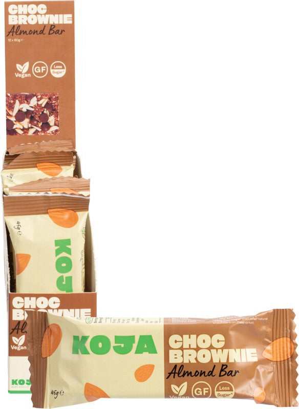 KOJA Almond Bar Choc Brownie - 12x45g Organic Rice Malt Syrup, Desiccated Coconut, Rice Puffs, Almonds (12%) (Almond Butter, Almond Meal, Slivered Almonds), Organic Coconut Oil, Pumpkin Seeds, Dark Chocolate Chips (4%), Organic Coconut Sugar, Cacao Powder (3%), Himalayan Salt.