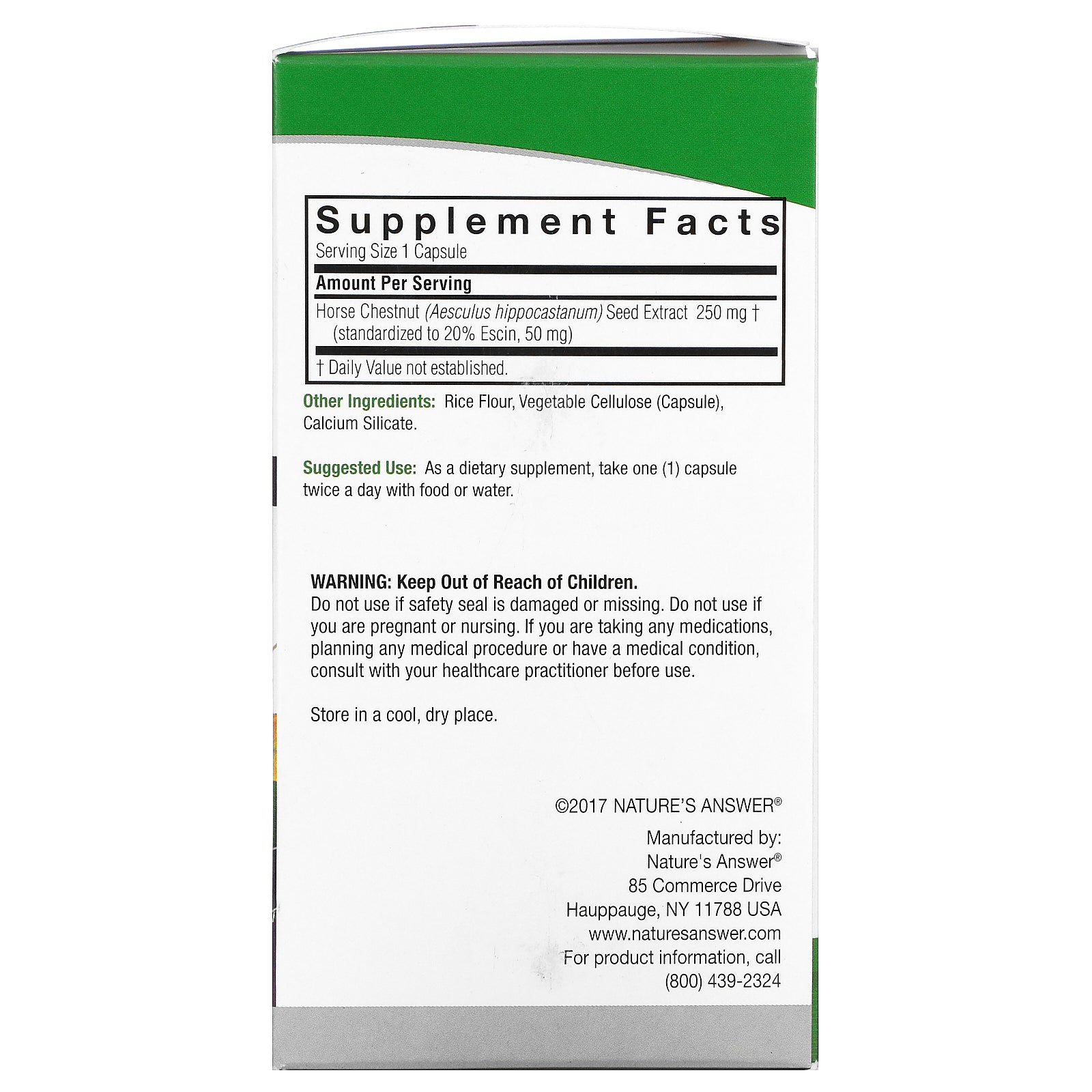 | Horse Chestnut Extract (Aesculus hippocastanum) (seed) Extract (standardized to 20% Escin, 50 mg) | 250 mg | † |