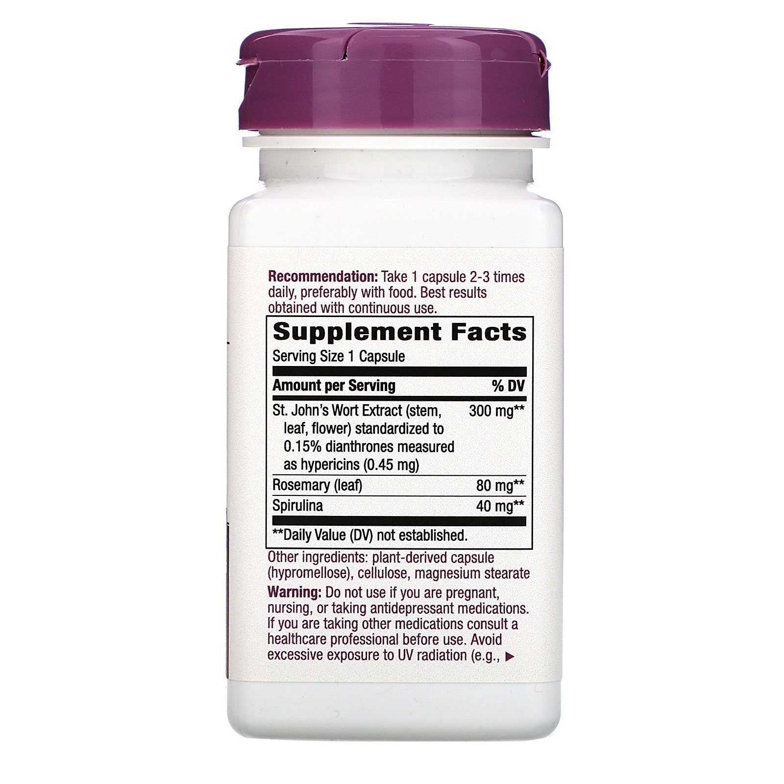 Do not use if you are pregnant, nursing, or taking antidepressant medications. If you are taking other medications consult a healthcare professional before use. Avoid excessive exposure to UV radiation (e.g., sunlight or tanning) while using this product. Contains the amino acid phenylalanine.