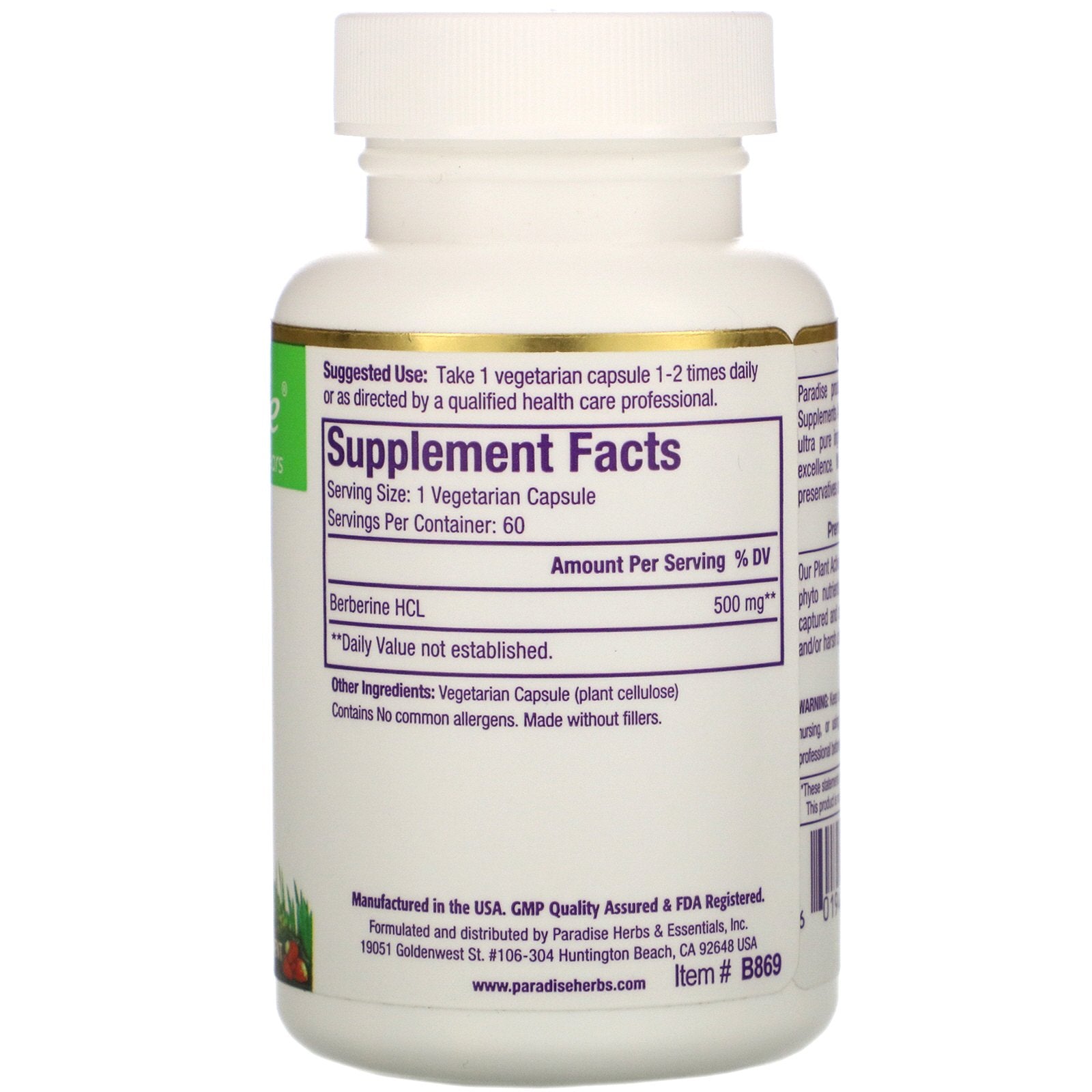 Paradise Herbs, Berberine , 500 mg, 60 Vegetarian Capsules