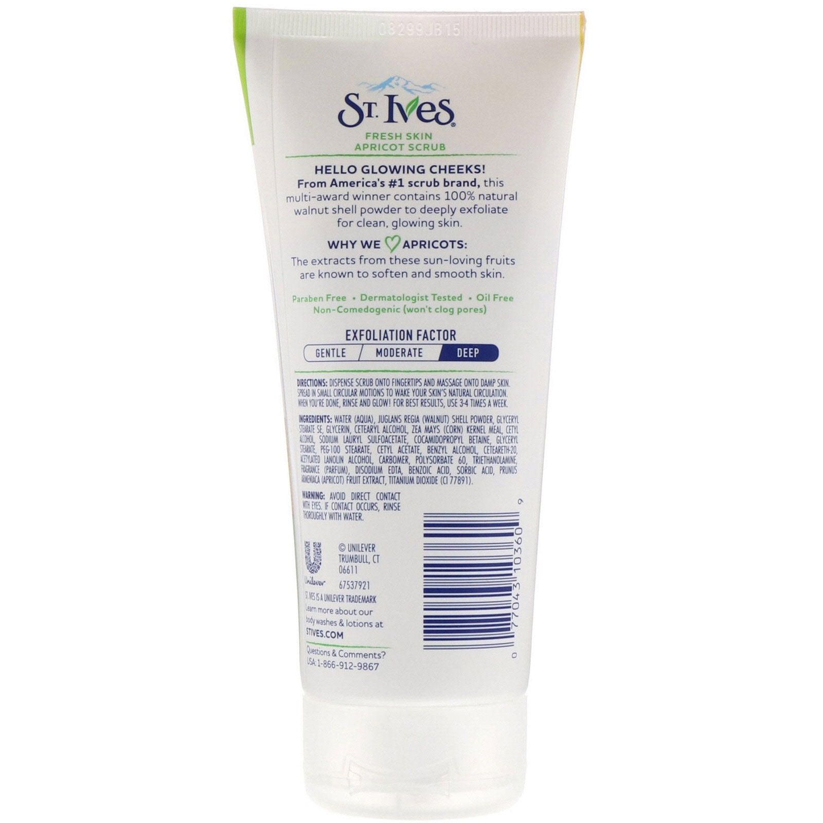 Water, juglans regia (walnut) shell powder, glyceryl stearate se, glycerin, cetearyl alcohol, zea mays (corn) kernel meal, cetyl alcohol, sodium lauryl sulfoacetate, cocamidopropyl betaine, glyceryl stearate, peg-100 stearate, cetyl acetate, benzyl alcohol, ceteareth-20, acetylated lanolin alcohol, carbomer, polysorbate 60, triethanolamine, fragrance, disodium edta, benzoic acid, sorbic acid, prunus armeniaca (apricot) fruit extract, titanium dioxide (ci 77891).